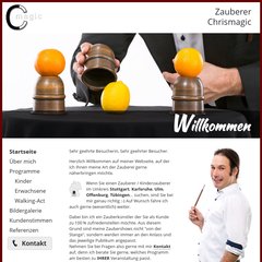 Themen: Referenzen, Über mich, Programme, Saalzauberei, Tischzauberei, und Kinderzauberei.