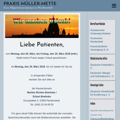 Mueller-mette rangiert auf Platz 1.721.040 in Deutschland. 'Eine Allgemeinarztpraxis in Norderstedt Praxis Müller-Mette.'