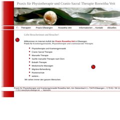 Themen: Therapien, Praxis Ellwangen, Roswitha Veit, Aktuelles, Physiotherapie und Krankengymnastik, und Cranio Sacral Therapie.