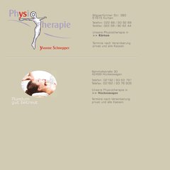 Physiotherapie-schnepper rangiert auf Platz 12.689.628 in Deutschland. 'Physiotherapie Yvonne Schnepper | http://www.physiotherapie-schnepper.de | Krankengymnastik | Med. Massage | Wärmetherapien | Kürten.'