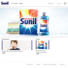 Themen: Inhaltsbereich, Marken, Service-Funktionen, Hauptnavigation, Sunil aktiv, und Sunil color.